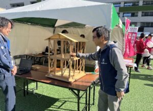 子どもたちには、地震の揺れを再現したミニ耐震模型実験が大人気!