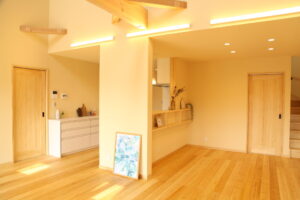 「海外のおしゃれなアイデアを取り入れた、天然木の大空間の家」