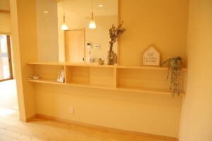吹き抜けがかっこいい大空間のリビングには、海外で大人気のヌックをベンチ式で取り入れました。